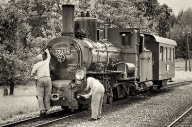 Die liebevolle Pflege der Lok sollte sich auszahlen: 399.05, eine vierfach gekuppelte Stütztenderlok, Baujahr 1908, wurde erst im Jahr 2000 ausgemustert. Sie befindet sich heute im Besitz der Österreichischen Gesellschaft für Eisenbahngeschichte. Alle sechs hergestellten Loks dieser Reihe (ursprünglich an die Mariazellerbahn geliefert) sind erhalten geblieben. Als die Aufnahme entstand, waren sie auf der Waldviertelbahn eingesetzt, einer 82 km langen Schmalspurbahn (760 mm) der ÖBB, die mehrere Strecken, ausgehend von Gmünd NÖ, umfasst.