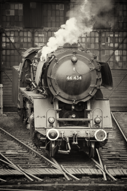Ottbergen an einem Sonntagvormittag, an dem eine fast bleierne Ruhe über der Anlage liegt. Hierhin hatte die Bundesbahndirektion Hannover alle 44er zusammengezogen, die auf den nicht elektrifizierten Strecken im östlichen BD-Bereich bis Braunschweig oder Helmstedt oder auf den Strecken des Harzes oder Weserberglandes schwere Güterzüge befördern mussten (Stand 1. Januar 1976: 21 Loks). Ottbergen hat viele begeistert, es war ein »klassisches« Dampflok-Bw. Der Einsatz der 44er endete dort am 29. Mai 1976.