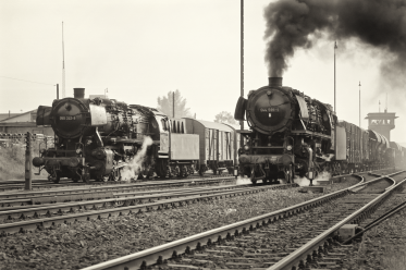 Die BR 03 gehört zu den ästhetisch besonders gelungenen, elegant erscheinenden Maschinen. 03 131 wurde als vorletzte Lok dieser Baureihe wenige Wochen, nachdem diese Aufnahme an ihrer Stammstrecke Ulm – Friedrichs-hafen entstand, stillgelegt (heute: Deutsches Dampflokomotiv-Museum, Neuenmarkt). Das Bw Ulm, letztes Einsatz-Bw der DB für diese Baureihe, setzte zu Beginn der 1970er Jahre noch zehn Loks ein. Die Rauchentwicklung in diesem Bild war keine Ausnahme. Sie nahm auch in Süddeutschland den benachbarten Häusern ihr ansonsten freundlich helles Erscheinungsbild