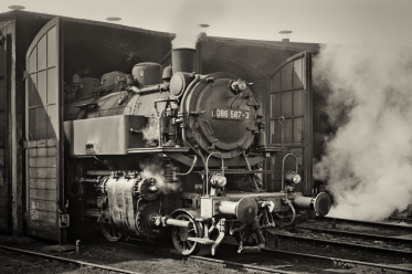 Anfang 1972 ist das Bw Nürnberg Rangierbahnhof noch fest in Dampflok-Regie. Der Bestand umfasst 27 Loks der BR 44, 23 der BR 50 und 17 der BR 86. In Nürnberg Rbf herrscht eine rege Betriebsamkeit voller Bewegung, Rauch und Dampf – und einer entsprechenden akustischen »Begleitmusik«. Die Loks der BR 86 werden u.a. auf den Stichstrecken Burgthann – Allersberg, Neumarkt – Beilngries, Fürth – Markt Erlbach eingesetzt. 086 587-3 führt am 29. September 1972 blumengeschmückt den letzten Dampfzug nach Markt Erlbach. Am 22. Dezember 1972 endet der Einsatz der 86er in Nürnberg.