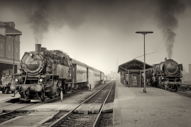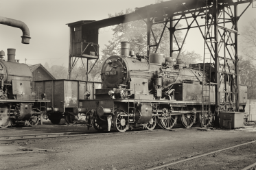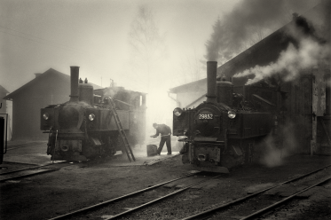 An einem neblig kühlen Märzmorgen werden die Maschinen im Heizhaus Garsten für den Tageseinsatz vorbereitet. Ab und an bricht bereits die Sonne durch und wird bald die Oberhand gewinnen. Der erste Bauabschnitt der ältesten Schmalspurbahn Österreichs wurde 1889 eröffnet. Die Steyrtalbahn wurde ausschließlich mit Dampfloks betrieben. Der leichte Oberbau verhinderte den Einsatz von Dieselloks der BR 2095. Beide hier abgebildeten Loks befinden sich heute im Besitz der ÖGEG, die seit 1985 zwischen Steyr und Grünburg einen Museumsbahnbetrieb unterhält.