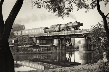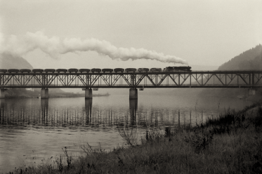 Ein typisches Bild für die Moselstrecke: Eine schwer arbeitende 44 zieht einen mit Steinkohle beladenen Ganzzug in langsamer Fahrt Richtung Trier. Zu diesem Zeitpunkt sind noch zwölf Loks der BR 44 in Koblenz und 42 Loks in Ehrang stationiert, die eine durchschnittliche tägliche Laufleistung von über 400 km aufweisen – ein Spitzenwert, der über dem der Strecke Rheine – Emden liegt. Die späte Elektrifizierung der Moselstrecke war vor allem den bautechnischen Schwierigkeiten im 4,2 km langen Kaiser-Wilhelm-Tunnel geschuldet.
