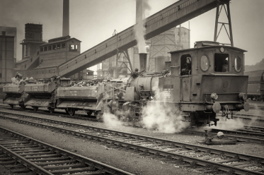 Trotz des seit Jahren fortschreitenden Strukturwandels ist die Steinkohleförderung im Ruhrgebiet in vollem Gange. Auf der Zeche Radbod wird seit 1909 Kohle gefördert – die architektonische Vielfalt der Gebäude im Hintergrund lässt erkennen, dass die Zeche über Jahrzehnte gewachsen ist. Lok Radbod 4, Baujahr 1911, ist keine preußische T 3, sondern eine Hohenzollernlok, Typ »Crefeld«, etwas jünger und ca. 60 PS stärker als die T 3. Die »Schwesterlok« Radbod 3 ist bei den Hammer Eisenbahnfreunden betriebsfähig erhalten geblieben.