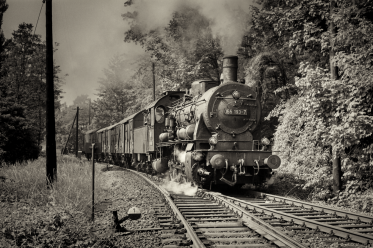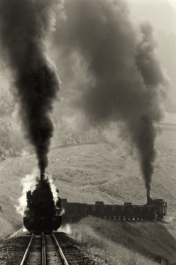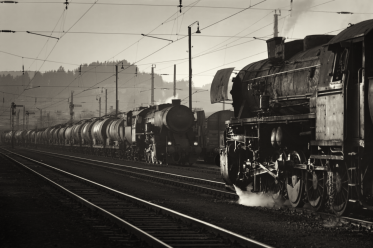 Schwerlastdampfbetrieb im Herzen der Steiermark. Vermutlich schon seit römischer Zeit wurde am Erzberg Eisenerz gewonnen. Die Zahnradstrecke mit Steigungen von bis zu 71 ‰ wurde 1891 eröffnet. Zuglok ist 197.303, eine der drei im Jahr 1912 gebauten schweren F-Kuppler. Als Schiebelok fungiert 97.209, Baujahr 1893 – die älteste in diesem Buch vorgestellte Lok, in ihrem 83. Dienstjahr. Auf der acht Kilometer langen Strecke bis zur Passhöhe (1204 m) mussten die Heizer in ca. 1,5 Stunden bis zu 2 t Kohle auf den Rost werfen – bis die Strecke 1979 in den Dieselbetrieb überging.