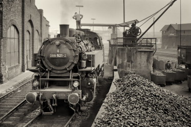 In einem Nebenbahn-Bw wird besonders deutlich, wie viel Handarbeit allein für das Bekohlen der Maschinen nötig ist. Nachdem eine Anzahl von Kohlenhunten von Hand beladen worden ist, sind drei Männer erforderlich, um diese per Kran über den Kohlenkasten der erst vor wenigen Wochen hier eingetroffenen 086 521-2 zu heben und dort zu entleeren. Im Verlauf der ersten Jahreshälfte 1971 werden in Mayen noch sechs Loks der BR 86 vor Güter- und Personenzügen eingesetzt. Darüber hinaus gibt es Lokomotiven der BR 50 und 94, wenige Monate zuvor waren noch zwei Loks der BR 78 vorhanden.