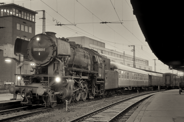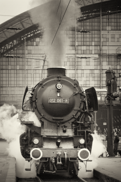 012 061-8 startet am 25. Mai 1975 um 9.12 Uhr mit einem Sonderzug Richtung Trier. In dieser Zeit ist der Kölner Hbf noch mit Wasserkränen ausgerüstet, die imposante Hallenkonstruktion nicht vom Ruß der Dampfzeit befreit. Vor allem die 01.10 des Bw Osnabrück kamen über viele Jahre regelmäßig nach Köln, bis 1964 die Strecke bis Hamm elektrifiziert war. Darunter waren »Langläufer« von Hamburg-Altona nach Bonn (485 km) und nach Aachen (524 km). 012 061-8 wurde am 27. Juni 1975 in Rheine ausgemustert und gehört seitdem zum Bestand des Deutschen Dampflokomotiv-Museums, Neuenmarkt.