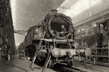 Der in der Rauchkammer arbeitende Schweißer freut sich offensichtlich über die seiner Arbeit geltende Aufmerksamkeit. 064 457-5 wird noch bis zum 11. Dezember 1973 vom Bw Crailsheim eingesetzt. Sie kehrt danach Anfang 1974 wieder ins AW Trier zurück. Dort wird ihr Kessel in die 24 009 des Eisenbahn-Kurier eingebaut, deren Kessel verschlissen ist. Sie ist damit eine der letzten Loks, die im AW Trier in Arbeit genommen werden. 1974 endet dort die Dampflokunterhaltung. Danach verbleibt bei der DB nur noch das AW Braunschweig, das bis 1975 Dampflokomotiven repariert.