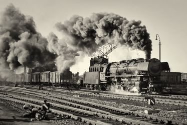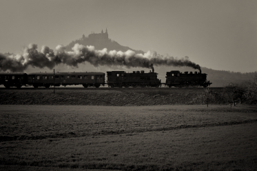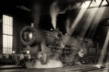 Die Außendrehscheibe des Bw Ehrang in der drückenden Wärme eines hochsommerlichen Nachmittags. Weniges reflektiert so eindrücklich die Behäbigkeit des damaligen Betriebs wie eine große Zahl von »Jumbos« der BR 44, die sich nach schwerer Fahrt »ausruhen«. Gleichzeitig ist die Szenerie voller Lebendigkeit, Geschäftigkeit: Die Loks »atmen«, zischen, brummen, rauchen. Lichtmaschinen surren, Pumpen schnarren, es wird Kohle nachgelegt, Wasser nachgeführt – schwerindustriell anmutendes Arbeitsumfeld im Kontrast zur Weinbergromantik der dahinter gelegenen Moselhänge.