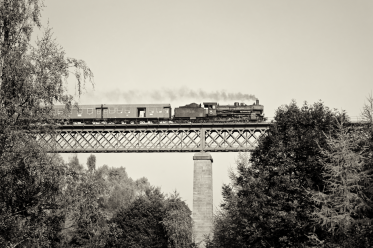 Ein typisches Bild für die Moselstrecke: Eine schwer arbeitende 44 zieht einen mit Steinkohle beladenen Ganzzug in langsamer Fahrt Richtung Trier. Zu diesem Zeitpunkt sind noch zwölf Loks der BR 44 in Koblenz und 42 Loks in Ehrang stationiert, die eine durchschnittliche tägliche Laufleistung von über 400 km aufweisen – ein Spitzenwert, der über dem der Strecke Rheine – Emden liegt. Die späte Elektrifizierung der Moselstrecke war vor allem den bautechnischen Schwierigkeiten im 4,2 km langen Kaiser-Wilhelm-Tunnel geschuldet.