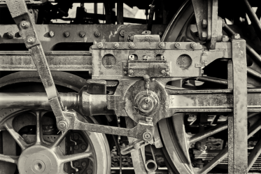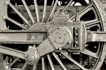 Zum Abschluss der »Trilogie Antriebstechnik« eine Detailaufnahme des Zylinderblocks der 001 133-8. Der Kolben gleitet freihängend im Zylinder. Die notwendige Führung erhält die Kolbenstange vorn durch eine Tragbuchse, hinten durch den auf einer Schiene geführten Kreuzkopf. Die Zylinderbohrung der Baureihe 01 wurde durch Ausbuchsen von ursprünglich 650 mm auf 600 mm reduziert, um die Beanspruchung des Rahmens zu senken. Beide Zylinderblöcke sind symmetrisch aufgebaut und damit links/rechts austauschbar.